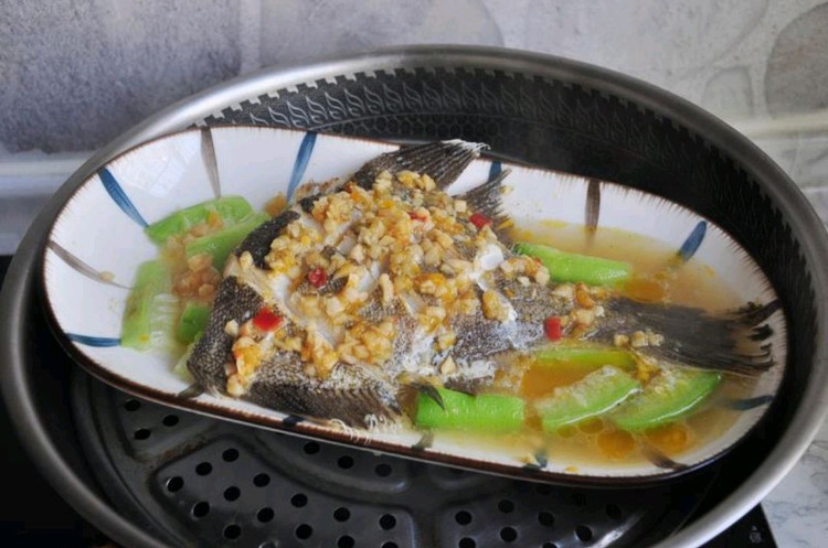 > 简单易做的剁椒蒜蓉丝瓜鱼